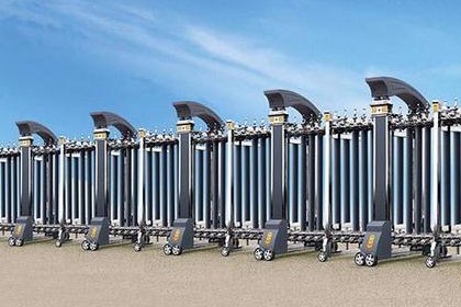 伸缩门(Retractable door),就是门体可以伸缩自由移动,来控制门洞大小、来控制行人或车辆的拦截和放行的一种门。伸缩门主要由门体、驱动电机,滑道、控制系统构成。门体采用优质不锈钢及铝合金专用型材制作,采用平行四边形原理铰接,伸缩灵活行程大。驱动器采用特种电机驱动,蜗杆蜗轮减速,并设有自动离合或手动离合器,自动离合停电时可自动启闭,手动离合停电时可手动启闭,控制系统有控制板,按钮开关,另可根据需求配备无线遥控装置。